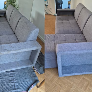 →Ce procédé nettoie en profondeur les fibres du tissu. Il retire les saletés, résidus, poussières et odeurs accumulées au fil du temps, pour une remise en état visible immédiatement.